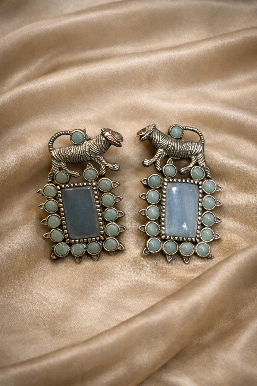 Crafted in antique oxidized silver tones and adorned with serene sky-blue stones, Azure Dynasty captures the essence of heritage elegance. The intricate detailing and bold rectangular center stone create a powerful yet graceful statement.